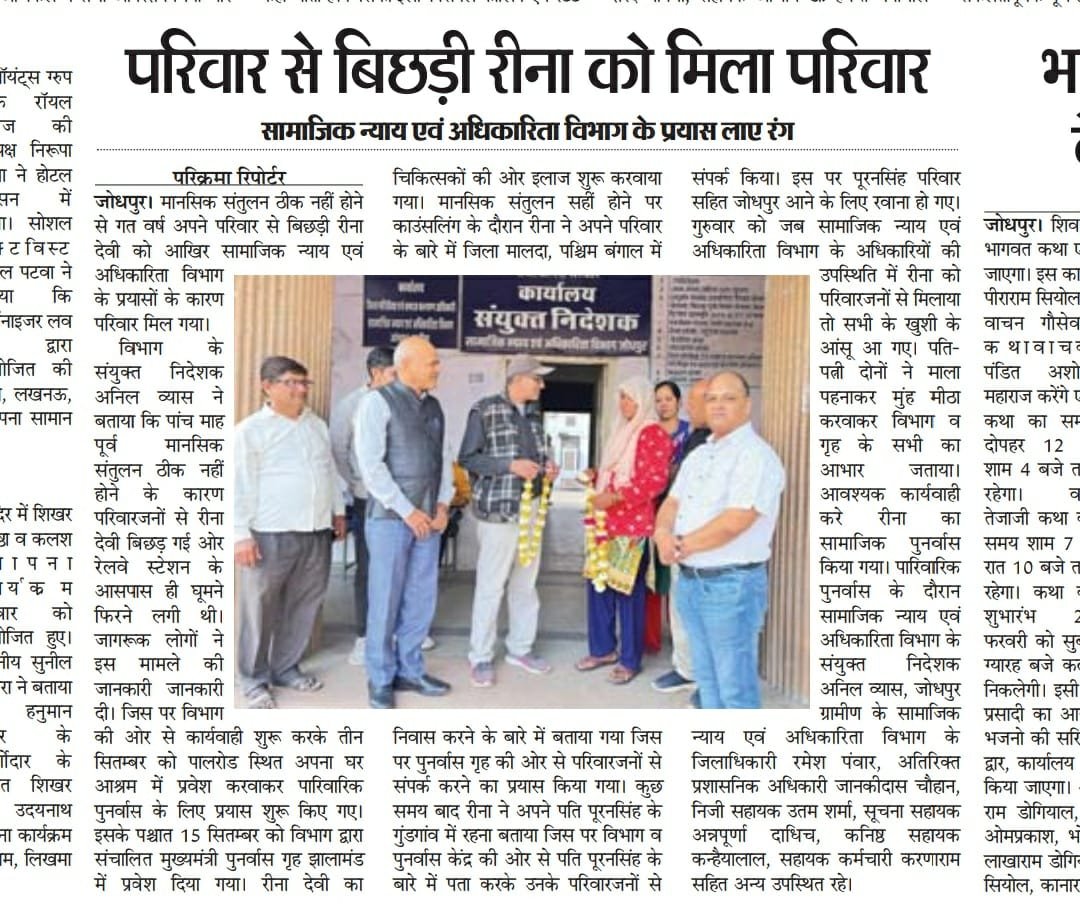 यह गृह जून 2024 से संस्था दारा संचालित किया जा रहा है जिसमे मानसिक रोगी,विमंदित एंव लावारिस महिलाओ के लिए राज्य सरकार ने चालू किया गया है l आज दिनांक तक इस गृह में 44 महिलाओ का प्रवेश हुआ था l उसमे से 14 महिलाओ को घर का पता कर,घर वालो को सुपर्द कर दिया गया है l